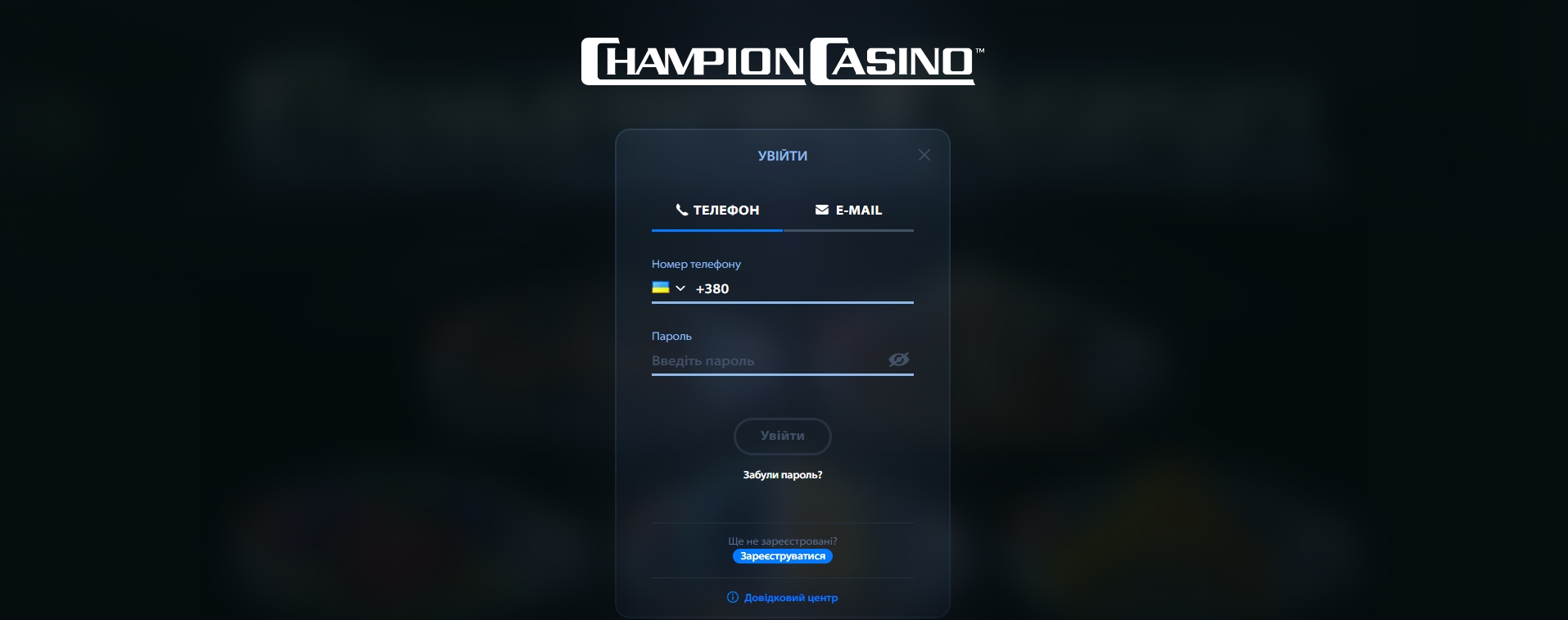 - Браузер смартфона: перейдіть за посиланням, оберіть вхід в казино Чемпіон, увійдіть до кабінету.